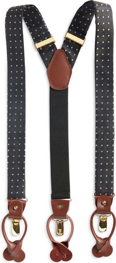 A neat dot pattern brings smart, classic detailing to suspenders crafted with soft silk to add polish and distinction to any formal look.