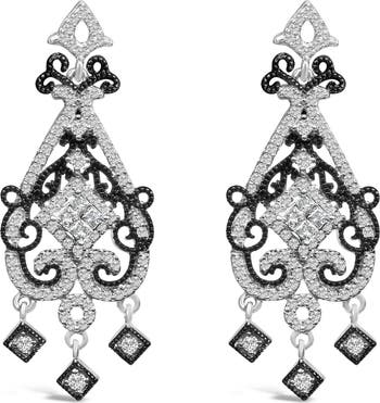 Black Rhodium and Silver 3/4 Cttw Diamond Chandelier Earrings