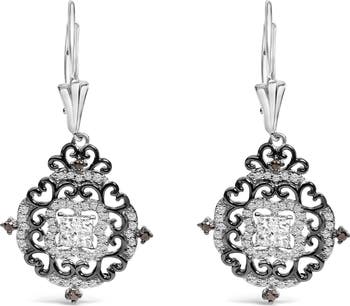 Black Rhodium and Silver 3/4 Cttw Diamond Medallion Drop Earrings