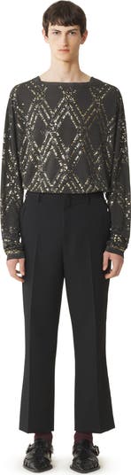 The bead and sequin embroidery motif on this top draws inspiration from the Ange dress created by Jeanne Lanvin in 1939. It is handmade using a dying technique that gives it a vintage look. The delicate details add a sophisticated touch, perfect for pairing with simple, elegant pants.