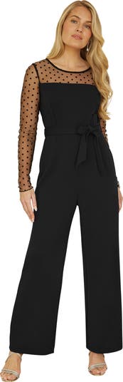 Time to RSVP in style to any invite this season - With cute spot mesh long sleeves, and a side leg style trouser that is mega flattering you'll feel like a million dollars at any occasion. With a belt at the waist to create a lovely silhouette,