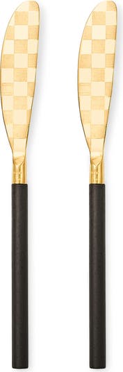 Durable stainless steel spreaders are given party-ready personality with contrast handles and signature check.