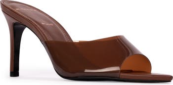 A sharp point adds a daring statement to this leather pump fashioned with a transparent vamp strap and striking stiletto heel.
