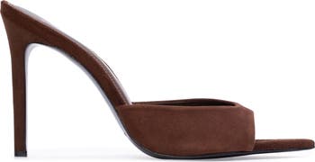 Pointy toe slipper mule, set on a straight stiletto heel. Made with brushed kid suede.