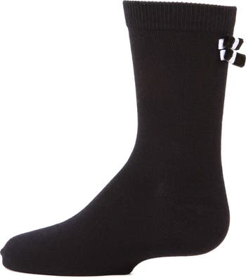 Fancy affair, without the tux. Cotton-blend girls crew socks are accented with stunning, contrasting bows along the cuff. Simple, elegant, AND breathable to get her through the party in comfort.