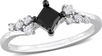 Celebrate contrast and elegance with this Black and White Diamond Engagement Ring. Crafted in 14k White Gold with black rhodium plating, this exquisite piece features a princess-cut black diamond at the center with round-cut white diamond clusters on the sides. Its stackable design allows for versatile layering, making it a dainty and delicate addition to your collection. An ideal gift for her, this ring effortlessly captures the essence of distinctive beauty and contemporary design. Embrace the fusion of classic allure and modern flair with this exceptional creation.