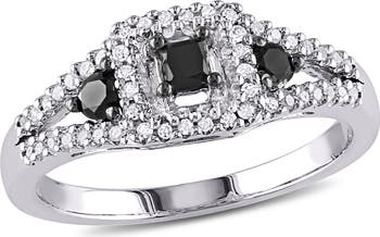 Celebrate your distinctive love story with the dramatic brilliance of this stunning engagement ring. Crafted in luminous sterling silver, the design incorporates both princess-cut and round diamonds for a rich, textured sparkle. The split shank adds a modern, graceful foundation, while the contrast of black and white diamonds creates a sophisticated, powerful visual impact. This magnificent piece is an unforgettable symbol of commitment and unique, luxurious style.