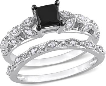 Exude timeless elegance with this princess and round-cut black and white diamond vintage bridal set. Its contrasting diamonds create a sophisticated, eye-catching design with a classic, vintage-inspired charm. Crafted in 14k white gold, the set highlights each stone’s brilliance while offering refined, enduring style. Perfect for celebrating love and cherished milestones, it blends emotional significance with elegant beauty. With its intricate design and lasting appeal, this bridal set will be treasured for a lifetime.