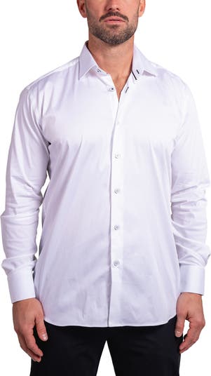 A stretch-enhanced, shape-retaining design keeps you crisp and comfortable in a classic button-up shirt that wicks moisture and looks great whether you wear it tucked or untucked.