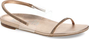 Sparkling crystals and transparent straps dazzle and delight on this airy, occasion-ready sandal.