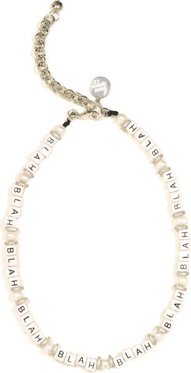 Make a statement with our BLAH BLAH BLAH Necklace! Crafted with freshwater pearls, ceramic charms, and glittering pave rhinestones, this piece will have you standing out for all the right reasons. Get ready to be the talk of the town!
