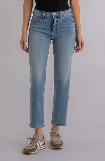 A go-to for laid-back looks, these stretchy jeans feature a high waist, ankle-length straight legs and Fab Ab front pockets that smooth your silhouette.