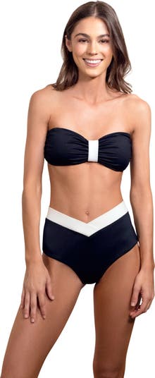 Our Blair high waisted two piece in black is the perfect Hamptons swimsuit. Try it in white as well and you can mix and match! Comes with removable straps & removable pads. Made with love in America.