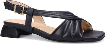 Slingback sandals in buttery-smooth quilted leather are set on a foam-cushioned footbed for enduring comfort and stability.