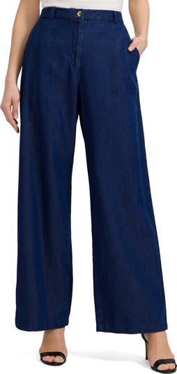 These wide-leg pants are crafted from lightweight denim in a go-with-anything wash for timeless sophistication that you can wear indefinitely.
