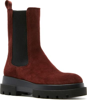 A soft suede upper and chunky lug sole bring grounded style to this Chelsea boot detailed with elastic gore panels for easy pull-on wear.