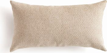 The indoor pillow that lives beautifully outdoors. Enjoy the upscale luxury and durability of Jacquard. With a woven oatmeal tone, it plays well with any palette. This pillow is weather resistant and responsibly made. Filled with 100% recycled fibers.