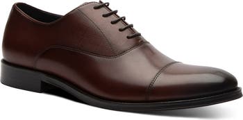 Textured panels elevate a polished leather oxford constructed with a burnished cap toe and comfortably cushioned footbed.