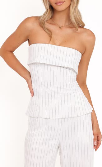 Slits at the sides ease the fit of this fitted foldover top cut in a cool strapless silhouette for a sassy addition to your warm-weather wardrobe.
