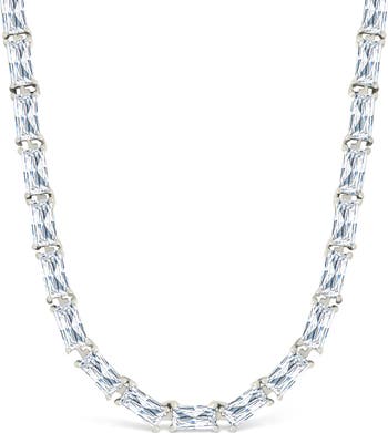 Emerald-cut bright-white cubic zirconia lend elegant shimmer and shine to a tennis necklace secured by a slide closure to perfectly adjust the length with ease.