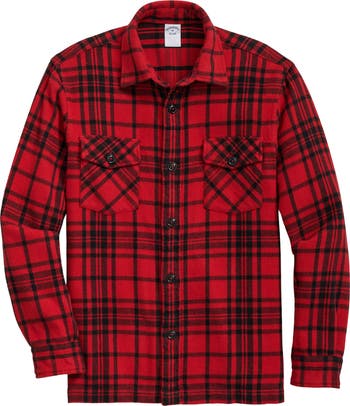 A classic red-and-black plaid brings an old-school look and feel to an overshirt made of heavyweight cotton twill and brushed for enhanced softness and warmth. Wear it buttoned-up or layered and unbuttoned—the straight hem keeps you untucked and casual no matter which way you style it.