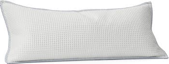 Contrasting blanket stitching lends artisanal flair to this organic-cotton pillow cover featuring a proprietary waffle weave that's breathable and offers plush, springy texture.