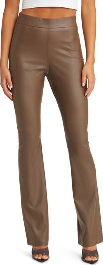 A classic bootcut silhouette adds versatile style to these faux-leather pants that add the perfect amount of edge to any look.