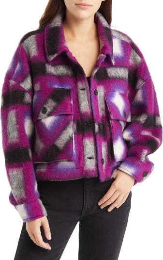 Take a classic outdoors look to the street with this wool-blend shirt-jacket refreshed with a cropped length and a dreamy, abstract plaid.