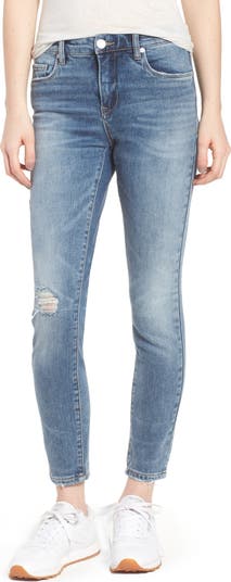 Subtle patches of distressing, whiskering at the hips and a natural-looking fade give these sleek skinnies well-loved appeal.