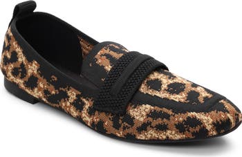 Lively leopard spots energize the look of a stretch-knit loafer grounded by comfort-centric memory foam cushioning.
