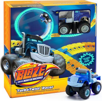 Blaze and the Monster Machines Crusher Glow Tracks & Loop Playset Crusher is ready to race, scheme, and take on Blaze in this action-packed glow-in-the-dark track set! Perfect for toddlers ages 3 to 8+, this flexible buildable raceway brings Crusher’s larger-than-life personality from the hit Blaze TV show straight into playtime. With Crusher leading the way, kids can design endless racetrack layouts, experiment with stunts, and explore creative play. The set helps build problem-solving skills, STEM learning, coordination, and imagination while delivering nonstop racing excitement. Durable for both indoor and outdoor use, this set makes a thrilling gift for birthdays, holidays, or everyday fun. Crusher fans will love adding him to their Blaze collection for even bigger races and adventures.