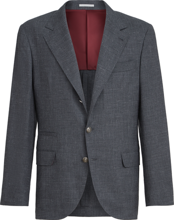 The lightweight wool, silk and linen fresco combines the natural properties of different yarns, resulting in a crisp, glossy material with a compact texture enriched by a characteristic slubbed appearance that creates irregular color effects. The cupro lining provides added comfort.