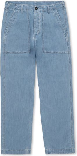 The Newfatigue denim is characterized by its namesake fatigue pockets , a reinterpretation of workwear detailing for the modern wardrobe. Inspired by Steve McQueen's iconic style , these regular-fit jeans, crafted from Japanese selvedge denim and made in Italy, embody timeless elegance. The wash enhances its deep tone. Details like the double-button closure and thoughtfully designed back pockets elevate this Fortela denim, ensuring a lasting investment in style and quality.