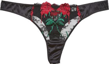 Bleeding roses embroidered on sheer tulle give an edgy vibe to this timeless thong.