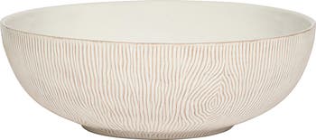 A wood-inspired motif brings a nature-inspired aesthetic to your tablescape on this ceramic serving bowl thoughtfully crafted in Portugal.