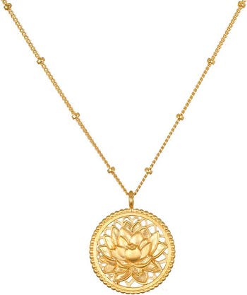 Each day offers us the precious gift of a new beginning, an opportunity to reach our full potential. This lotus flower pendant necklace in 18kt gold plate symbolizes new beginnings and full potential. On the back, a delicate inscription reads the mantra: I Am Blessed. Wear this necklace to open yourself up to infinite blessings on your journey to truth, or to inspire your new beginning. Throughout the world, the lotus represents new beginnings, rebirth and infinite potential. In nature, the lotus roots itself in mud, arising daily from the murky water to burst into bloom.