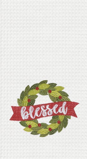 Blessed Wreath Embroidered Waffle Weave Kitchen Towel