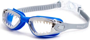 Comfortable swim goggles featuring a shark-teeth print and super antifog lenses are sure to make a splash at the beach or the pool.