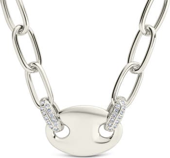 Pavé cubic zirconia links sparkle at the front of this stack-worthy anchor chain necklace plated in 14-karat gold for elevated gleam.