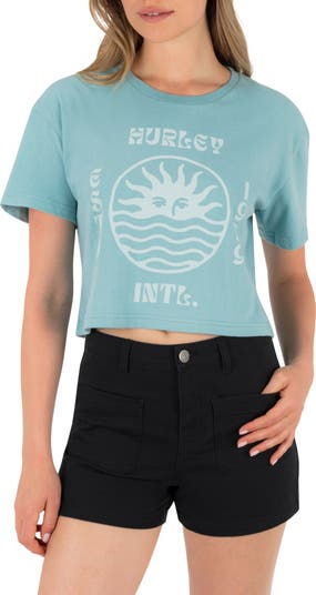 A retro graphic gives beachy appeal to this breathable cotton T-shirt that's perfectly cropped.