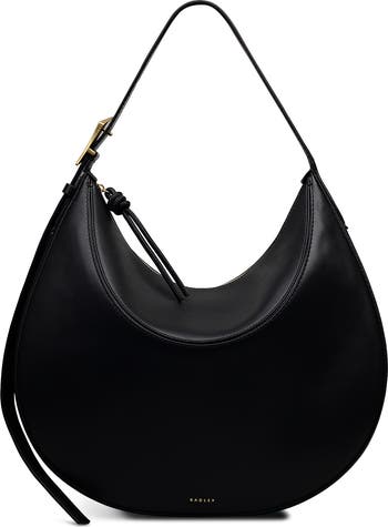 A deep scooped silhouette, mirrored by curving top edge inserts. The Bliss Crescent shoulder bag is a sculptural masterpiece, one that’s been expertly shaped using smooth leather. Finished with our flowing Radley plate hardware that adorns the padded handle as an adjuster.