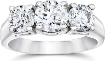 1 3/8ct Three Stone Lab Grown Diamond Engagement Ring 14K Gold