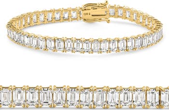 20Ct Emerald Cut Diamond Tennis Bracelet 14k Gold 7" Lab Grown