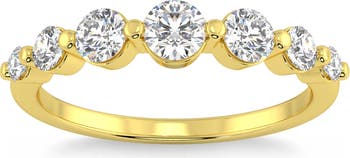 This high quality women's ring features round brailliatn cut grauated lab grown diamonds. All diamonds are prong set in solid 14k polished gold mounting. The ring is perfect to stack with other rings or accent your engagement ring.