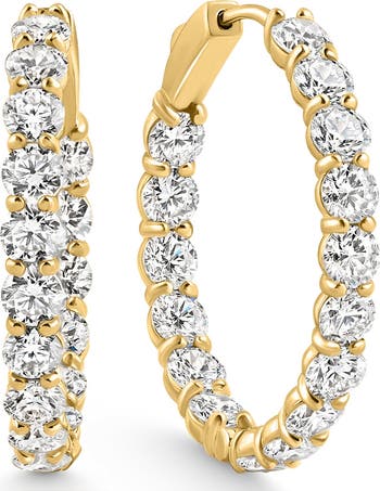 Elevate your everyday elegance with these stunning inside-out diamond hoop earrings, designed to shine from every angle. Featuring 32 brilliant round lab-grown diamonds, these hoops deliver exceptional sparkle with a total carat weight of 5 1/2 carats. Each diamond is carefully set along the front exterior and inside back of the hoop, creating a continuous flow of brilliance that catches the light with every movement. The classic 1-inch silhouette offers the perfect balance of bold presence and refined sophistication, making these earrings ideal for both special occasions and everyday luxury.