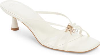 Sunny-day charms center the slender straps on a faux-leather slide sandal featuring a cylindrical kitten heel for a whisper of height.