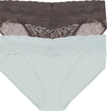 So soft and so stretchy one size v-kini. Super soft lace is paired with an easy hosiery fabric to provide an incomparable feel and fit that moves with you. Engineered flat modern lace with disappear under your clothes.