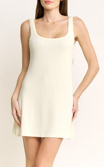 Short and sweet, you'll sleep soundly in this stretchy chemise cut from buttery-soft double-brushed pointelle fabric that spells out 'dreamer.'