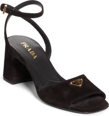 A delicate buckle strap wraps around the ankle on this soft suede sandal set on a rounded block heel.