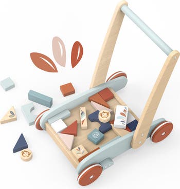 Wonderful toy for baby taking his first steps! Helps your little one to stand and walk, developing stability and essential balancing skills. The 27 colorful blocks included serve as weight for the wagon when baby pushes it but also add fun to stacking and building. This Block walker was designed with a brake system for your toddler's safety. This toy is crafted from sustainably sourced wood from FSC® certified forests. Presented in a beautiful gift box.